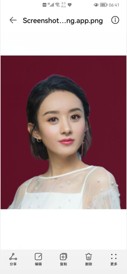 然后点击右上角的“保存”按钮,我们的证件照就做好了。我们可以在“文件管理”app中找到这张准备好的ID的照片,打开效果如下图。