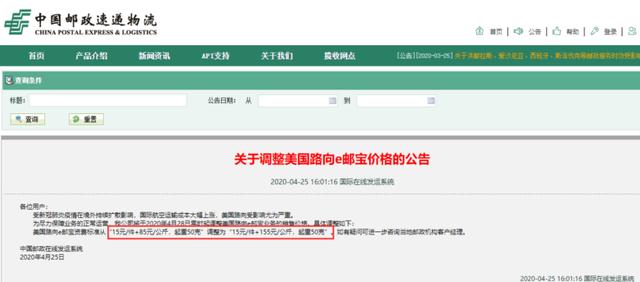 为保证业务的正常开展,EMS将于2020年4月28日零时起调整美国路E邮服务销售价格。具体调整如下: