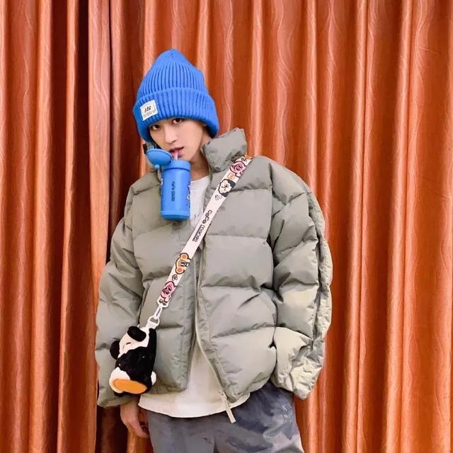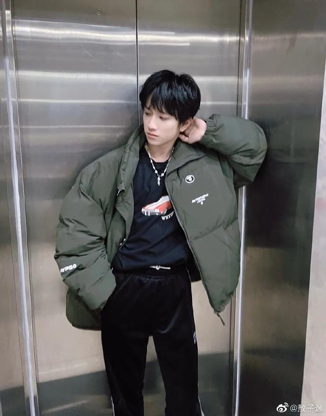敖子逸的军绿色羽绒服帅气十足,尽显男生的犀利硬朗。军绿色代表从容稳重,寓意永不放弃的精神,褪去少年时代,变得稳重成熟。