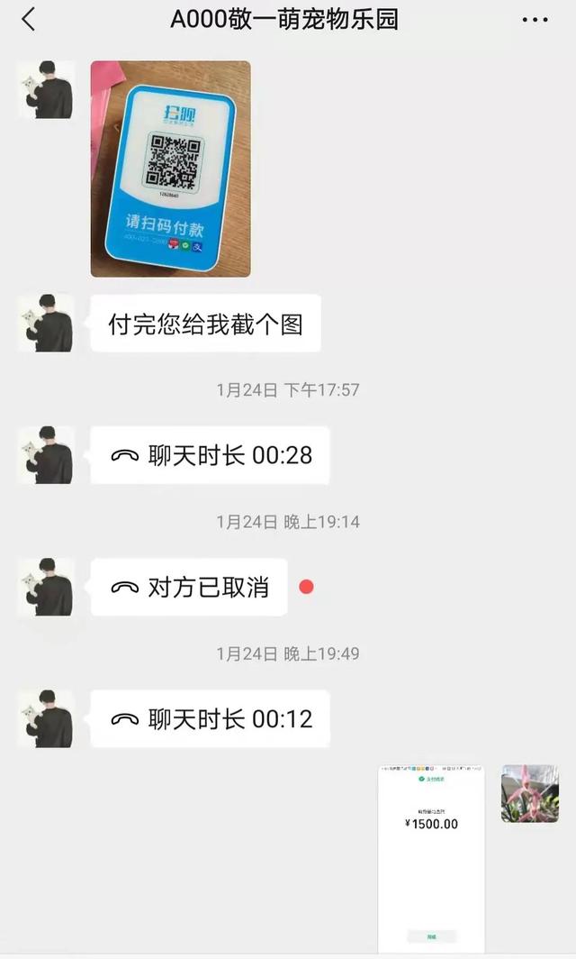 我们在淘宝谈了客服,对方说要加微信线下聊天,于是在1月24日15: 37和19: 52,通过微信一共支付了1800元买了一只两个月大的边境牧羊犬。没有通过支付宝交易。