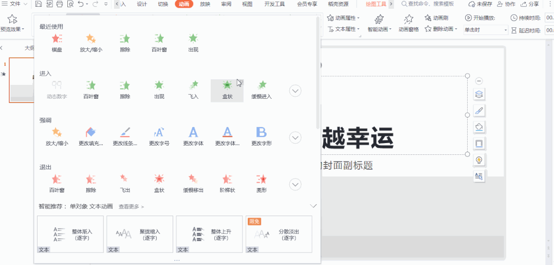 04扩展更多动画效果,或者选择“智能动画”,这里有上百种动画效果可以免费使用。