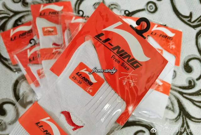 15年来,我前前后后收藏了四五百双李宁的球鞋,还有上世纪90年代北京亚运会的衣服,还有其他周边的玩具、饰品、模型等等。前段时间还收到几双李宁90年代的运动袜。当时李宁的产品外包装上会有李宁的印刷签名。