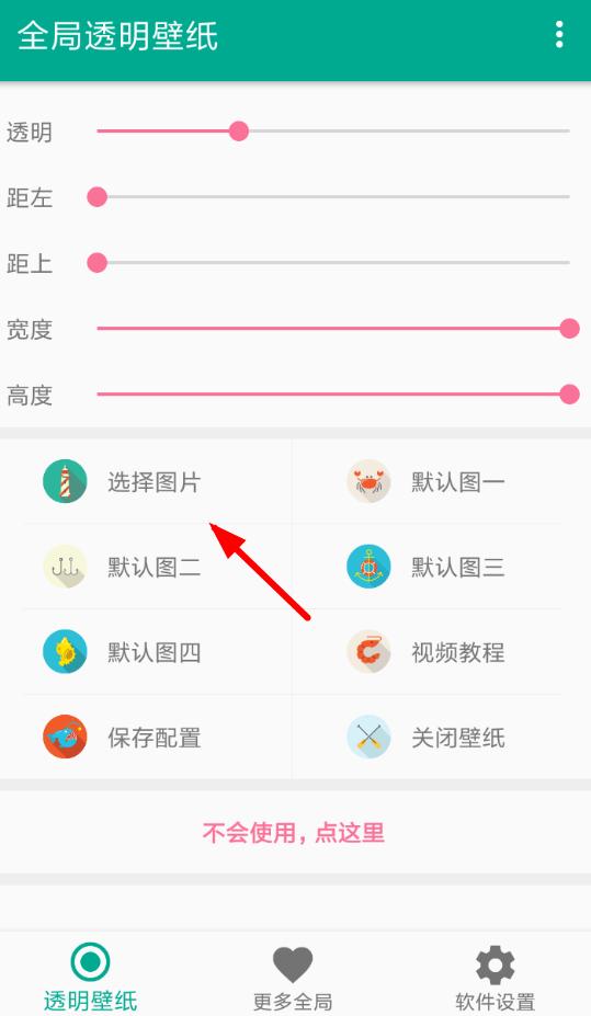 2.选中图片,完成壁纸设置后,从“软件设置”页面找到“屏蔽应用”功能,从中可以设置只在微信和QQ显示透明壁纸,避免与桌面壁纸冲突。