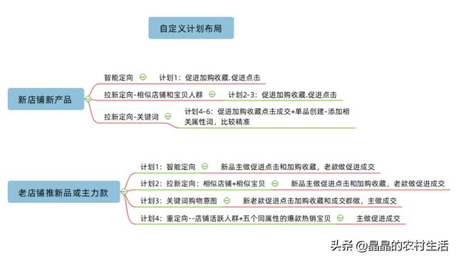 二:下面咱们再来讲一下关于老店新品或主力款怎么做自定义计划布局。我再重新发一下这个思维导图。对比看一下(上图)