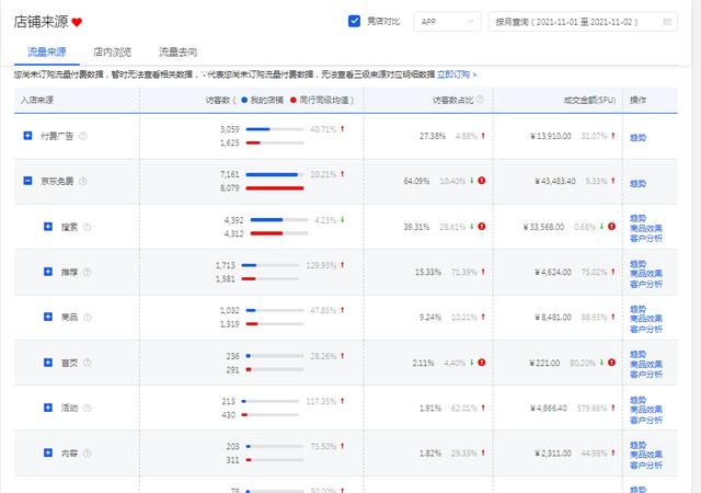 店铺付费占比过高,就会压制免费流量的上限,免费流量想提升,需要做好关键词,标题的布局,当各项数据逐渐高于同行,才能甩开大部分同行,拿到更多的免费流量。