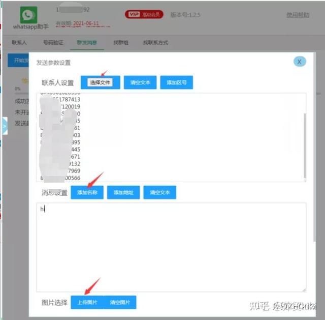 第三步:导入客户的电话,编辑发送的消息内容,可以插入客户的名字和上传图片即可裙发了