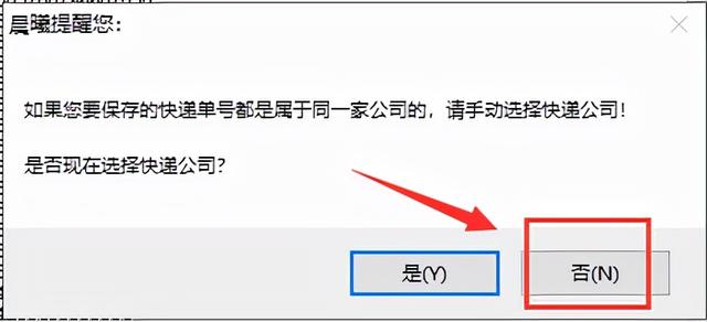 弹出一个提醒,点击“否”,不手动选择快递公司,因为可以自动识别