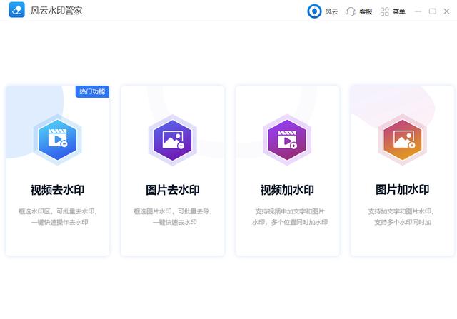 步骤一:运行风云水印管家,在主界面点击图片去水印选项。