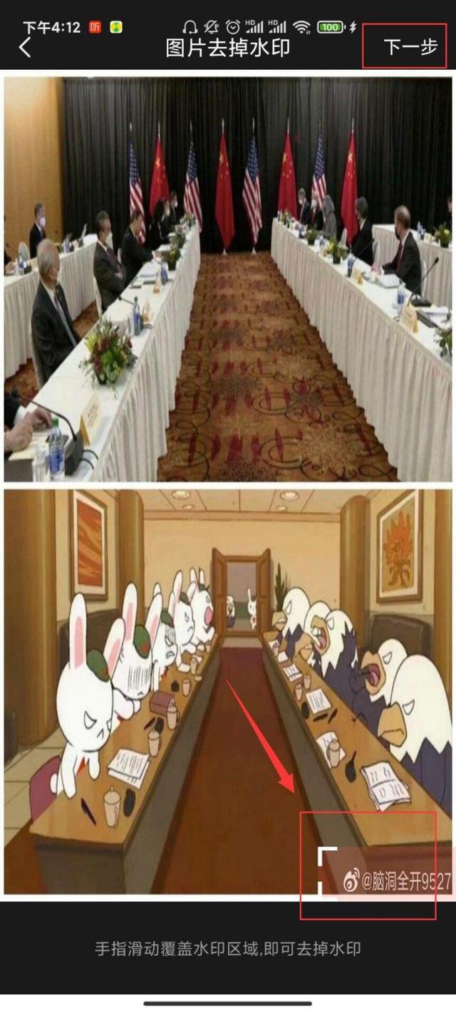 步骤二:点击之后,我们进入相册选择需要去除水印的照片,选择之后我们手动滑动覆水印区域,之后点击右上角“下一步”就可以将图片中的水印去除啦。去除之后,点击保存就可以啦!