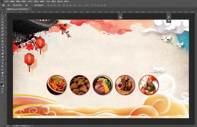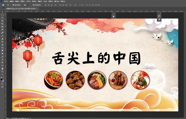 2、打开文字工具,在背景图片上写上文字“舌尖上的中国”;