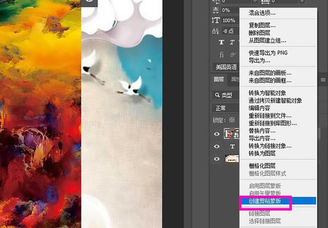 4、右键单击图片图层,点击-创建剪切蒙版;