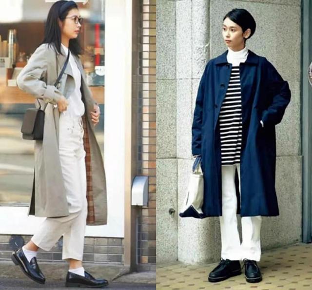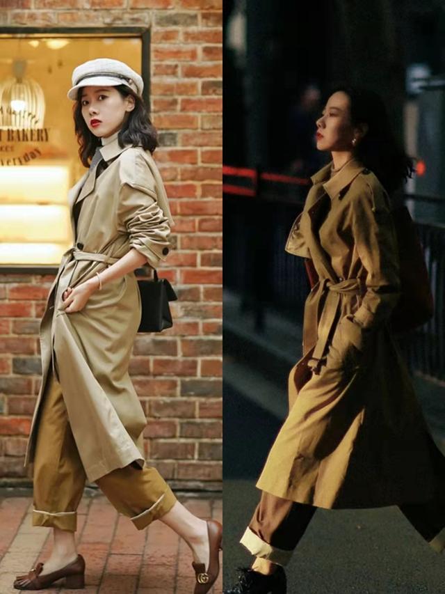 小个子女生更要试试用风衣搭配九分直筒或者九分阔腿裤的搭法,衔接粗跟浅口乐福鞋,轻松展现都市女性的时髦与摩登。