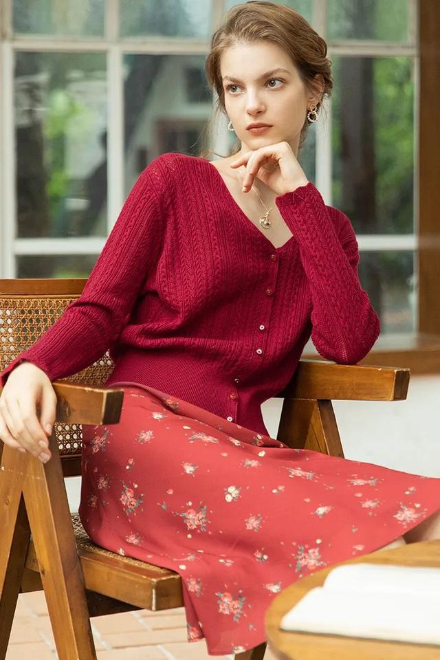 想要借机玩转大热简约风,利用碎花裙底色与奶奶衫上下呼应,和谐统一的穿搭韵味看起来就典雅显贵。
