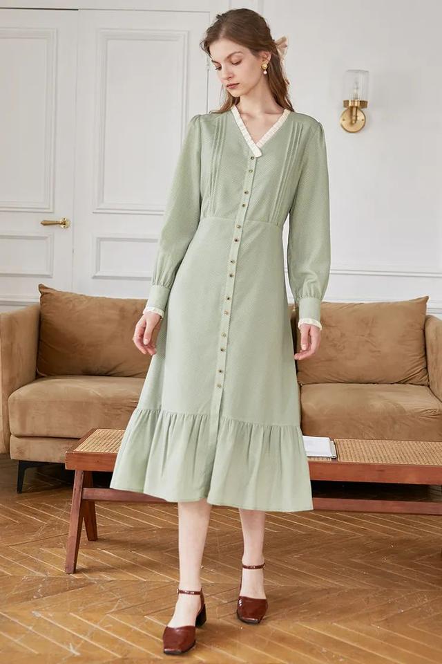 左:绿色波点连衣裙