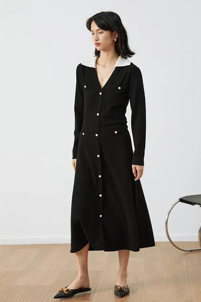 右:法式V领连衣裙