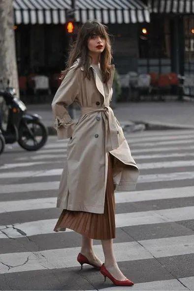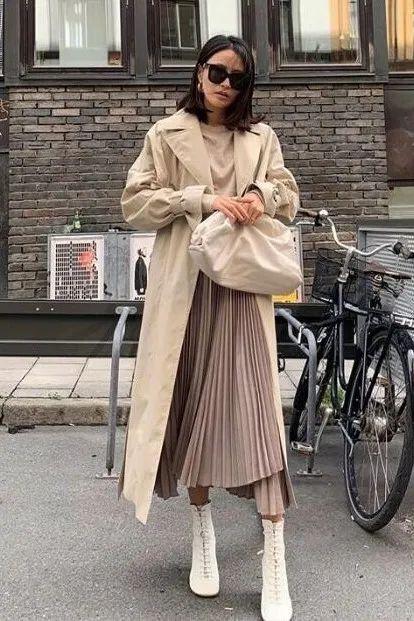 风衣+百褶裙绝对是春天最高级气质的王炸拍档,裙摆的褶皱元素不仅能让穿搭变得氧气满满,自带轻盈度层次度更是谁穿都能显瘦无比。