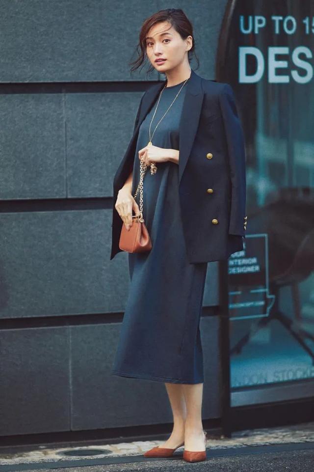 偏直筒式的连衣裙一直都深受职场女性追捧,用它搭西服外套,优雅干练的时尚韵味简直不要太好看。