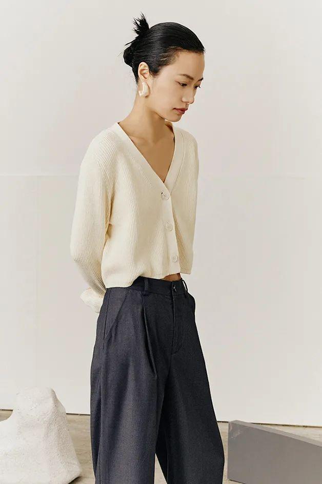右:复古V领薄款毛衣衫