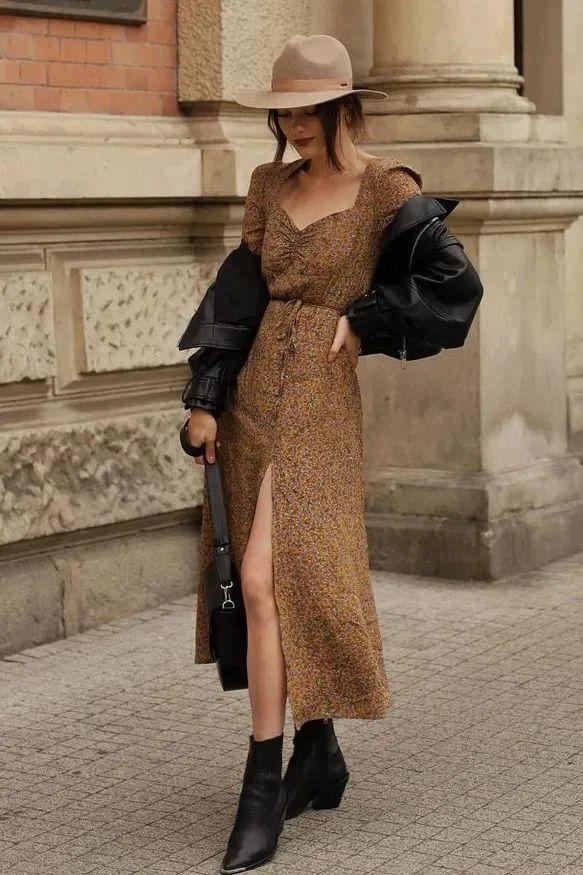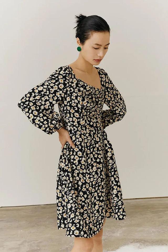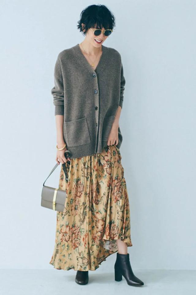 偏成熟的大印花裙,直接搭配纯色奶奶衫便能即刻做到脱俗、高级俩不误。