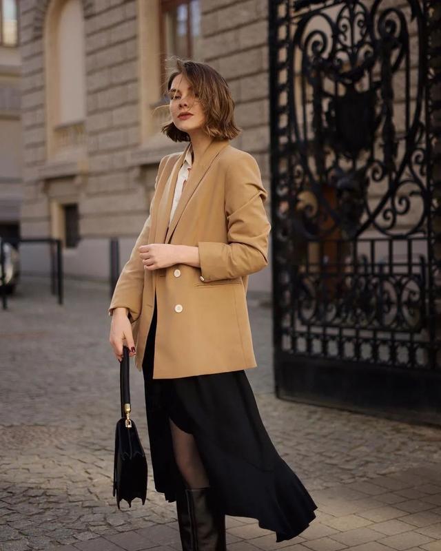 春秋时节西服的穿搭率已然是无法超越的经典了,好穿好搭配任何场合它都能轻松驾驭,特别是与裙子组CP后更是养眼又高级。