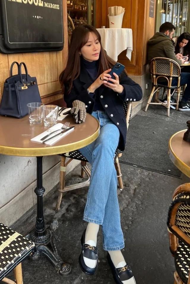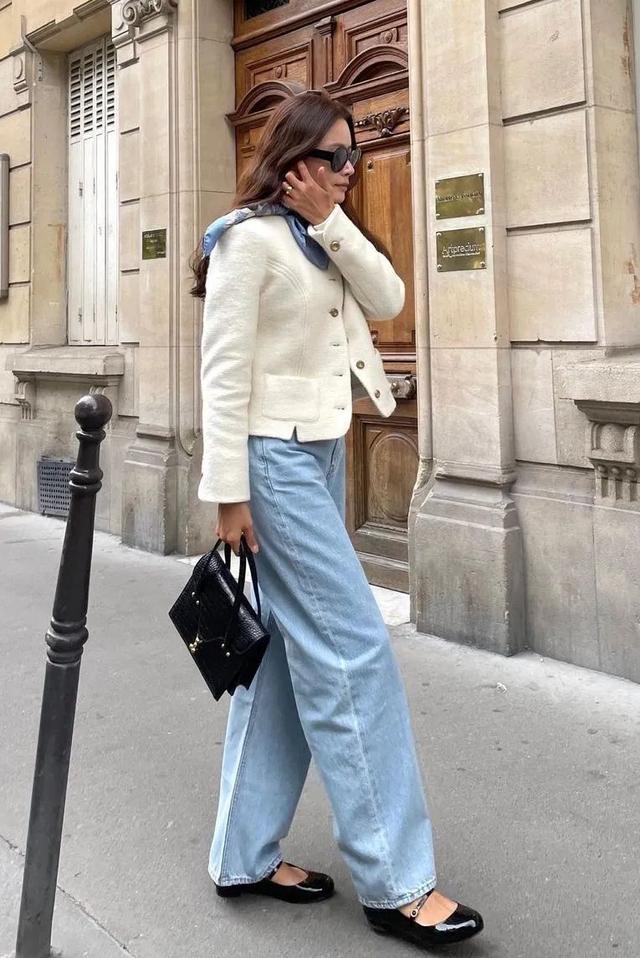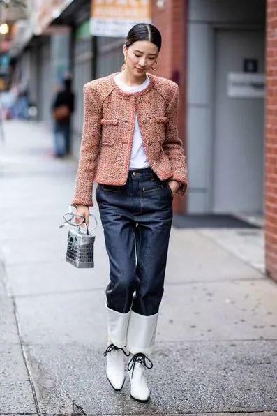 尤其是牛仔裤的中性属性不仅能平衡外套的甜美,还能让这款极具贵族气息的单品变得更具亲和力。