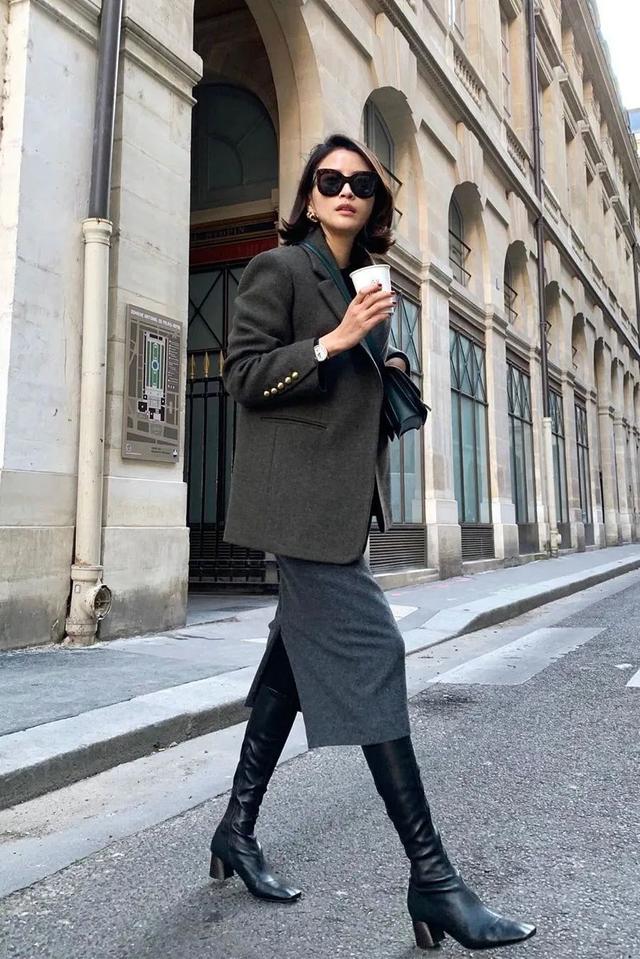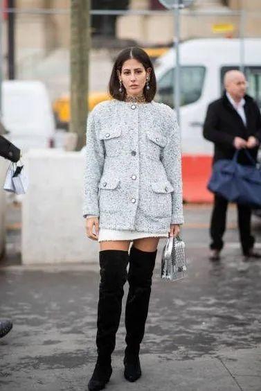 自带高级属性的粗花呢将质感无限激增于穿搭中,下装直接搭配长靴来相助,轻熟魅力更是又A又美。