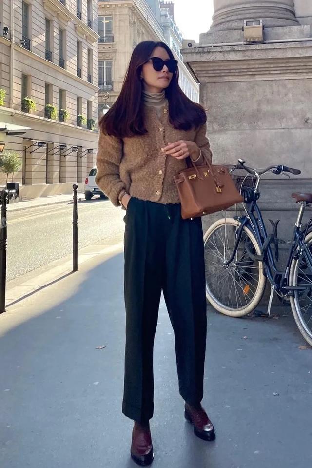 日常搭配小黑裤+乐福鞋,洒脱不拘一格的穿搭韵味无需刻意营造都能显尽穿搭之大气。
