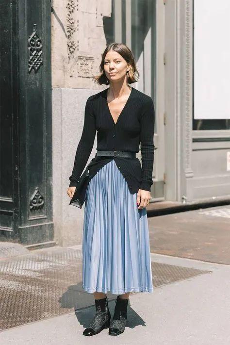 其中黑色o白色更是经典中的经典,日常通勤利用A字半裙来组合,恰到好处的气韵美氛围感瞬间拿捏住。