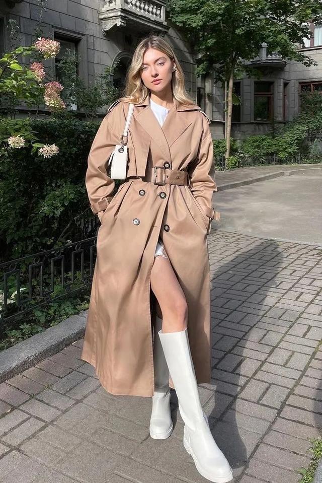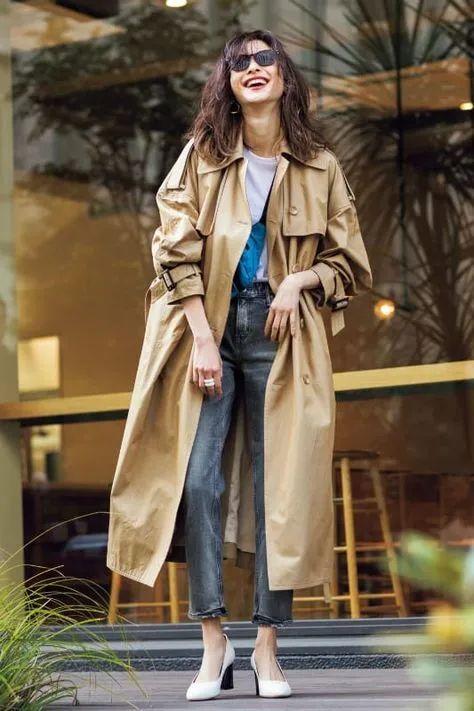 想要春日搭配气质更胜一筹,浅色风衣无疑是最好的选择,直筒版型将身材曲线修饰的无比“纤细挺括”优雅且有气场的搭配谁能不爱呢?
