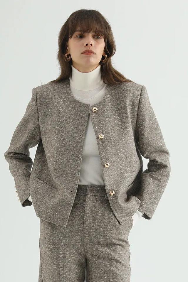 右:低圆领复古小香风外套