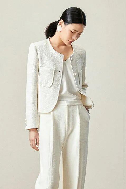 柔美知性的白色针织外套绝对是春天最美单品之一,特别是搭配9分裤来穿,既能提升穿搭明亮度,又能将雅飒浪漫同时进行到底。
