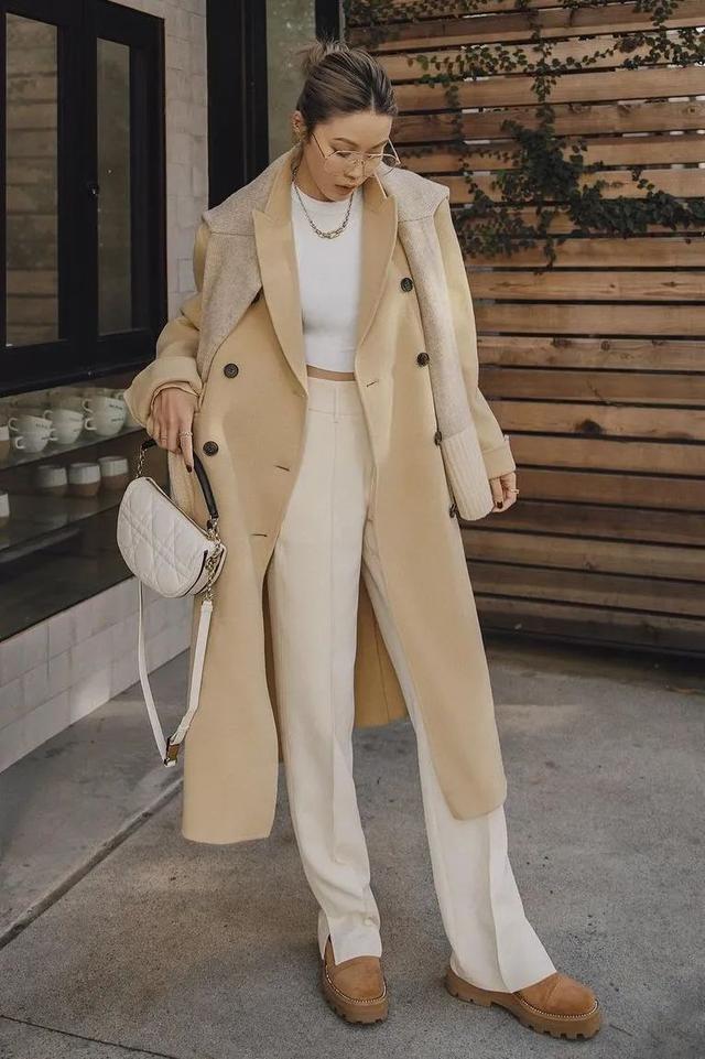 虽说亮色系鲜少有人敢穿,但偏黄色的卡其色还是值得入手的,简单搭配经典色or大地色,唯美浪漫与英伦酷A相互平衡,随便穿穿都惊艳力超Max