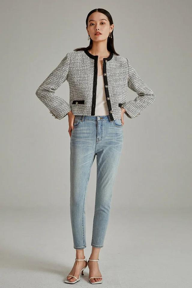 想要小香风外套看起来更飒雅日常,直接搭配各种休闲裤便能轻松出门。