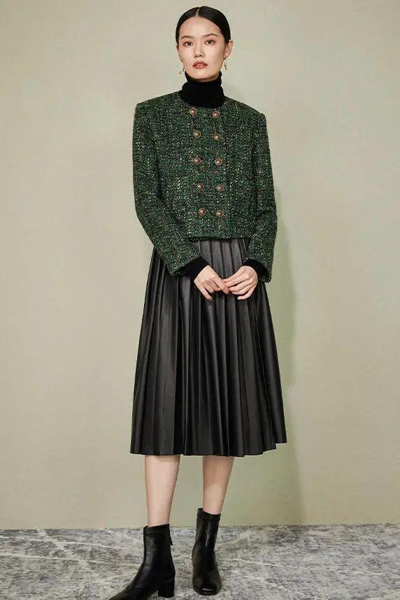 右:复古超短款小香风外套