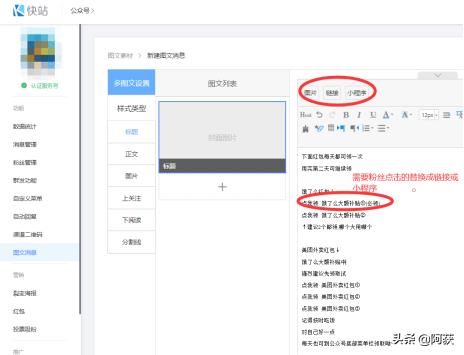 两种群发的内容讲解完了,我重点来说一下群发的时间设置,因为一个月只能群发推送四次,时间节点的话建议你们日活最低的那一天群发激活一下粉丝,可以参考快站-客服群发-预估发送人数,可以参考上周每天的均值,低于上周均值的那天就可以做群发激活了,懒得统计的就一周一次。