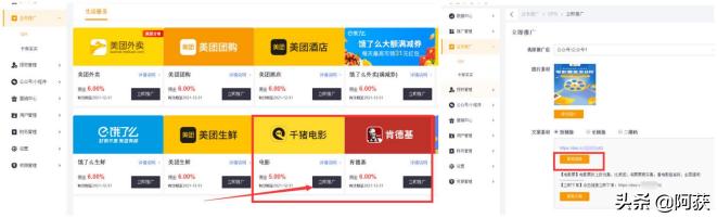 1)、云瞻平台 点击业务推广-cps-美团外卖,第一个和第二个都在图片上标记出来了,复制链接即可