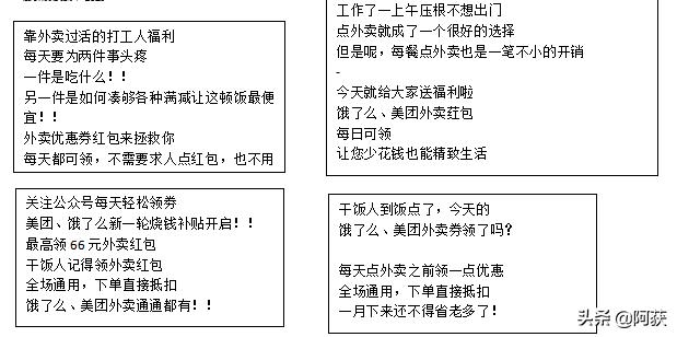 2)知乎(知乎软文上去插入外卖公众号信息,投放)