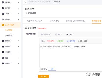 点击云瞻平台-公众号管理-自动回复-添加欢迎语
