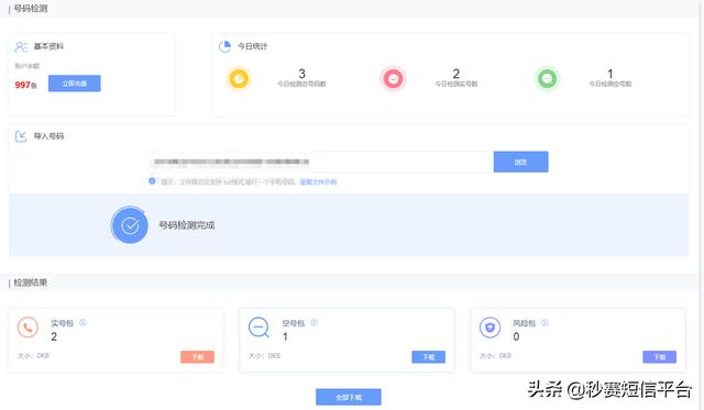 4、下载检测结果包(分为:实号包、空号包、风险包,请根据个人的需求,导出检测结果包)