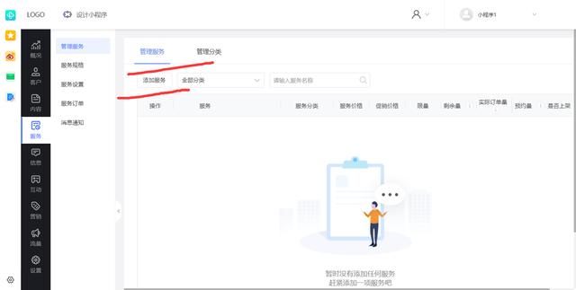 在小程序后台的服务功能下,将你运营的商品,或者是你提供的服务,给它们添加到后台。完成这两个步骤的操作,都是帮助你在装修设计小程序页面时更加的轻松。