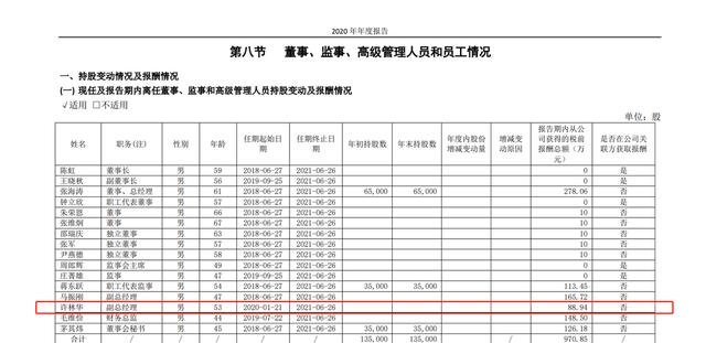 公司另一位时任副总经理的马振刚2020年获得年薪165.71万元。此外,时任公司职工代表监事的蒋东跃、公司财务总监毛维俭和董事会秘书茅其炜2020年所获年薪分别为113.45万、148.5万和126.18万元。