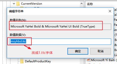 3,然后找到Microsoft Yahei Bold&Microsoft Yahei Ui Bold(TrueType),将返回Msyhbd.ttc更改为所需的字体,然后退出重启就可以了。