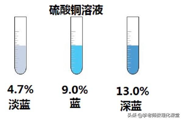 举例1:溶质质量分数越大的硫酸铜溶液,其溶液浓度越大,溶液颜色越深;