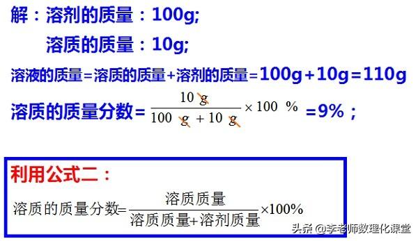 例题1:100g氯化钠溶液中含有氯化钠10g,求该氯化钠溶液中溶质的质量分数?