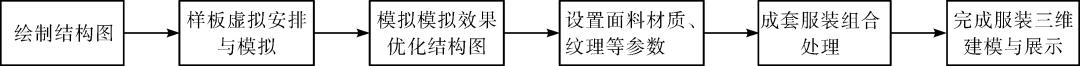 本文选取孔府旧藏中朝服、公服与常服基于服装三维虚拟展示软件CLO3D进行建模与模拟。服装三维建模与展示步骤如图1所示。