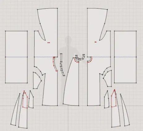 绘制结构图有两种方式:专业服装CAD软件样板绘制工具较为全面,适合结构较复杂的纸样;服装三维展示软件的二维纸样窗口提供简单的纸样绘制工具,适合较简单纸样的绘制和服装纸样细节修改。