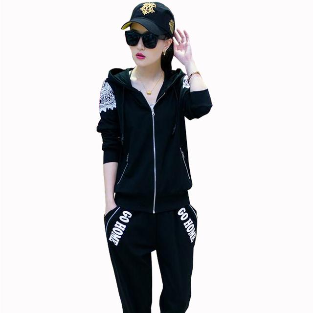 2017春装新款纯棉刺绣休闲时尚修身卫衣女运动亲肤套装