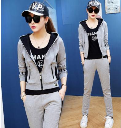 2017春装新款运动休闲套装连帽拉链外套长袖长裤女装两件套