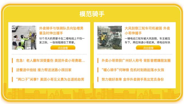 同时与中青报合作通过专题页面的形式持续宣传和表扬模范骑手。
