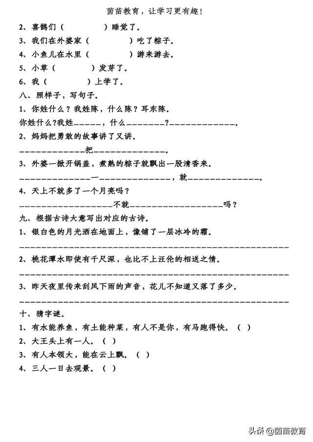 十、猜字谜。